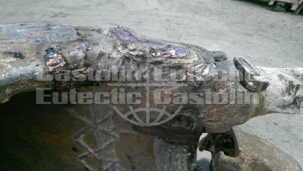 Мы применили технологию наплавки: электроды Castolin 690SF для восстановления основы и Castolin EC 4010 для создания сверхпрочного защитного слоя. Срок службы ковша увеличен до 5 месяцев.